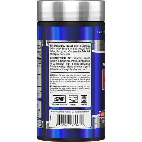 * دوز اثربخش: ارائه دوز استاندارد و مورد تحقیق ۳۰۰۰ میلیگرم HMB در قالب نمک کلسیم (Calcium HMB) در هر وعده.