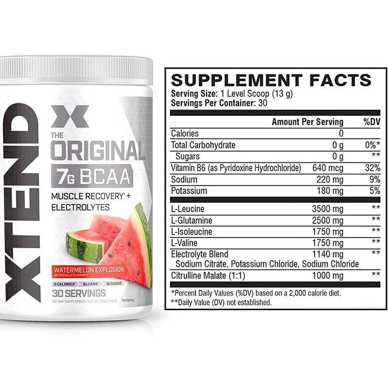 XTEND پیشرفته ترین نوع BCAA است و حاوی 7 گرم BCAA و 2/5 گرم ال-گلوتامین و 1 گرم سیترولین مالات است. به علاوه، Scivation XTEND با ترکیبی منحصربهفرد از الکترولیتهای محرک هیدراتاسیون، روشی بدون کالری است.