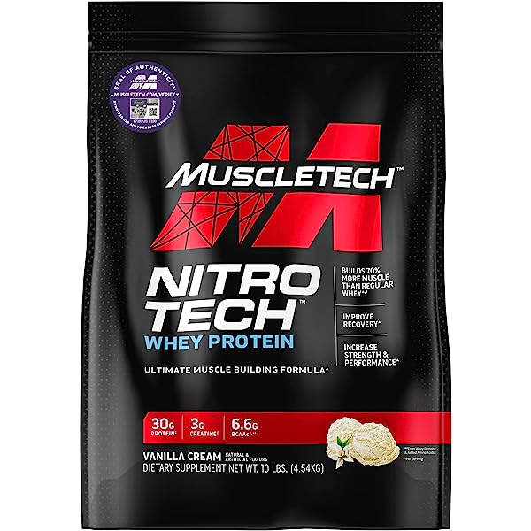 پروتئین وی نیترو تک ماسل تکمکمل نیتروتک پروتئین وی ماسل تک سرشار از پروتئین وی خالص است که 30 گرم پروتئین وی ممتاز را در هر اسکوپ در اختیار شما قرار میدهد که عمدتاً از پپتیدهای پروتئین وی و پروتئین وی ایزوله شده هستند. این مکمل 70 درصد بیشتر نسبت به پودرهای وی معمولی عضله می سازد و ریکاوری را افزایش می دهد.مکمل نیتروتک حاوی پروتئین هایی است که فرآیند فیلتراسیون چند فازی را طی می کنند تا پروتئین خالص ایزوله را به شما بدهد که به راحتی با آب مخلوط شده و سریعتر جذب بدن می شوند.پروتئین وی نیتروتک با 3 گرم کراتین، می تواند عضله بیشتری نسبت به پروتئین به تنهایی بسازید. این مکمل از برند ماسل تک قدرت شما را افزایش می دهد و با هر بار فشار تمرین، انرژی عضلات لاغر را بیشتر ریکاوری می کند. همچنین این مکمل حاوی 6.7 گرم بی سی ای ای است که به بهبود سریعتر خستگی کمک می کند.نیتروتک یک مکمل سازنده عضله وی مهندسی شده است که برای همه ورزشکارانی طراحی شده است که به دنبال عضلات بیشتر، قدرت بیشتر و عملکرد بهتر هستند.مشخصات محصول MuscleTech Nitro Tech Whey Protein✔️افزایش عضلات بدون چربی✔️70 درصد عضله سازی بیشتر نسبت به پودر های وی معمولی✔️افزایش استقامت، قدرت بدنی و انرژیتسریع روند ریکاوری✔️حاوی 100 درصد پروتئین وی فوق العاده تمیز✔️حاوی 3 گرم کراتین مونوهیدرات✔️حاوی 6.7 گرم اسیدهای آمینه ضروری (بی سی ای ای)✔️طعم های متنوع و عالی✔️بدون شکر یا پرکننده های دیگر✔️1.81 کیلو گرم.نمونه های فیک این محصول متاسفانه به صورت فراوان وجود دارد. این محصول در وزنهای ۱۸۰۰ گرم و ۴۵۰۰ گرم، با ضمانت اصالت و آزمایشگاه و مشروط بر لاین اصلی آمریکا در فروشگاه مکمل استار موحود میباشد.قیمت این محصول در بازار جهانی ۱۳۴ دلار میباشد.