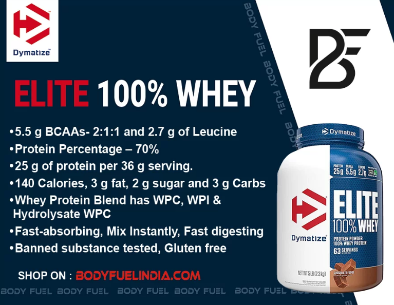 مکمل پروتئین وی %100 الیت Dymatize با 5.5 گرم BCAA در هر وعده به افزایش رشد عضلانی ، جلوگیری از عضله سوزی ، کاهش خستگی و درد عضلانی و افزایش عملکرد هوازی و بی هوازی کمک می کند.