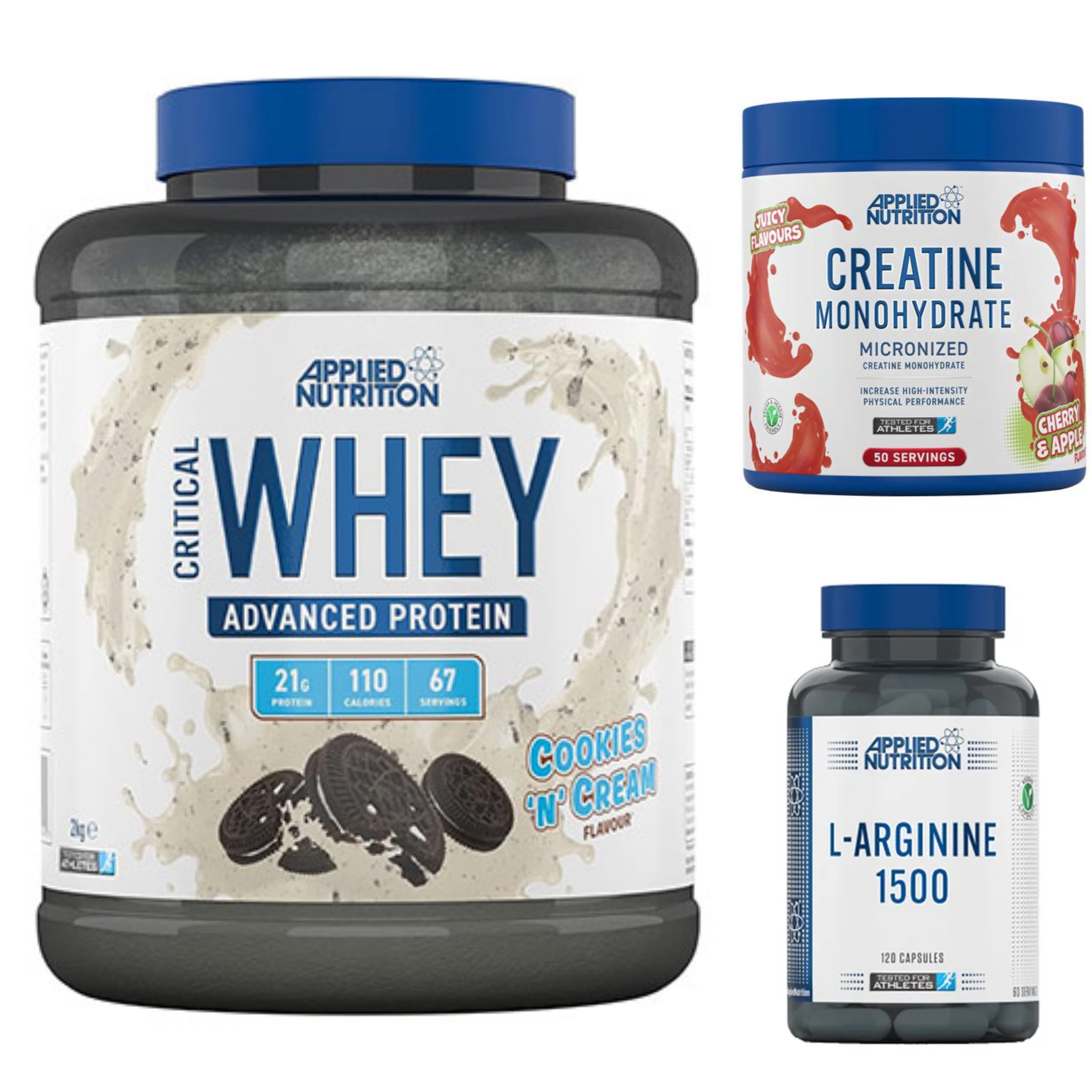 پکیج افزایش حجم عضلانی اپلاید ۱شامل: ۱_پروتئین وی اپلاید ۲کیلویی ۲_کراتین اپلاید ۲۵۰ گرمی ۳_ال آرژنین۱۵۰۰ اپلاید ۱۲۰عددی