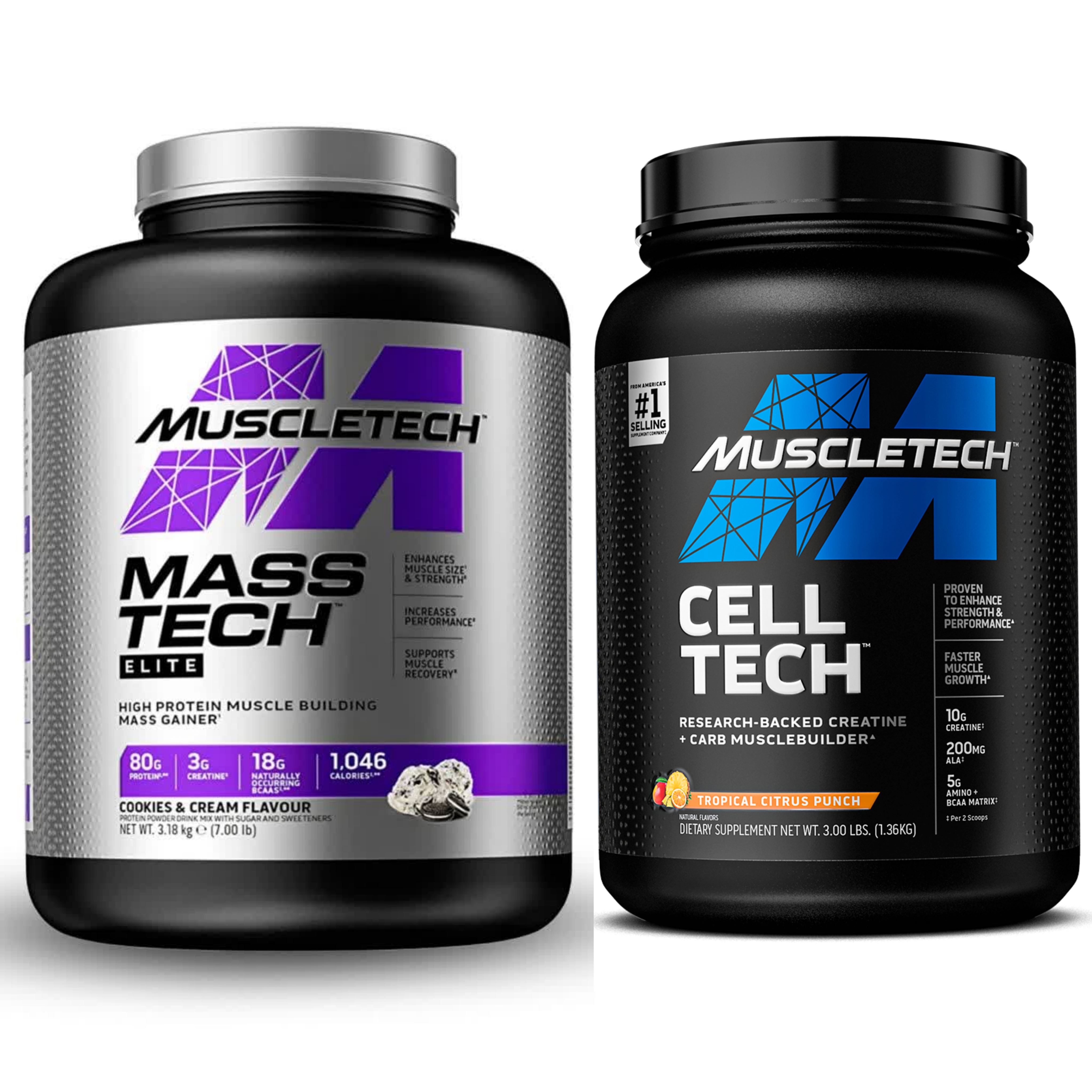 پکیج افزایش حجم و وزن ماسلتک یک مجموعه فوقالعاده حرفهای و بیرقیب است که با هدف افزایش حجم و وزن فوری و انفجاری طراحی شده است. این پکیج، با ترکیب دو فرمولاسیون پرچمدار و پیشرفته ماسلتک، یعنی قویترین گینر و قویترین کراتین ترکیبی جهان، نتایجی را در کوتاهترین زمان ممکن برای شما رقم میزند که پیش از این ندیدهاید.