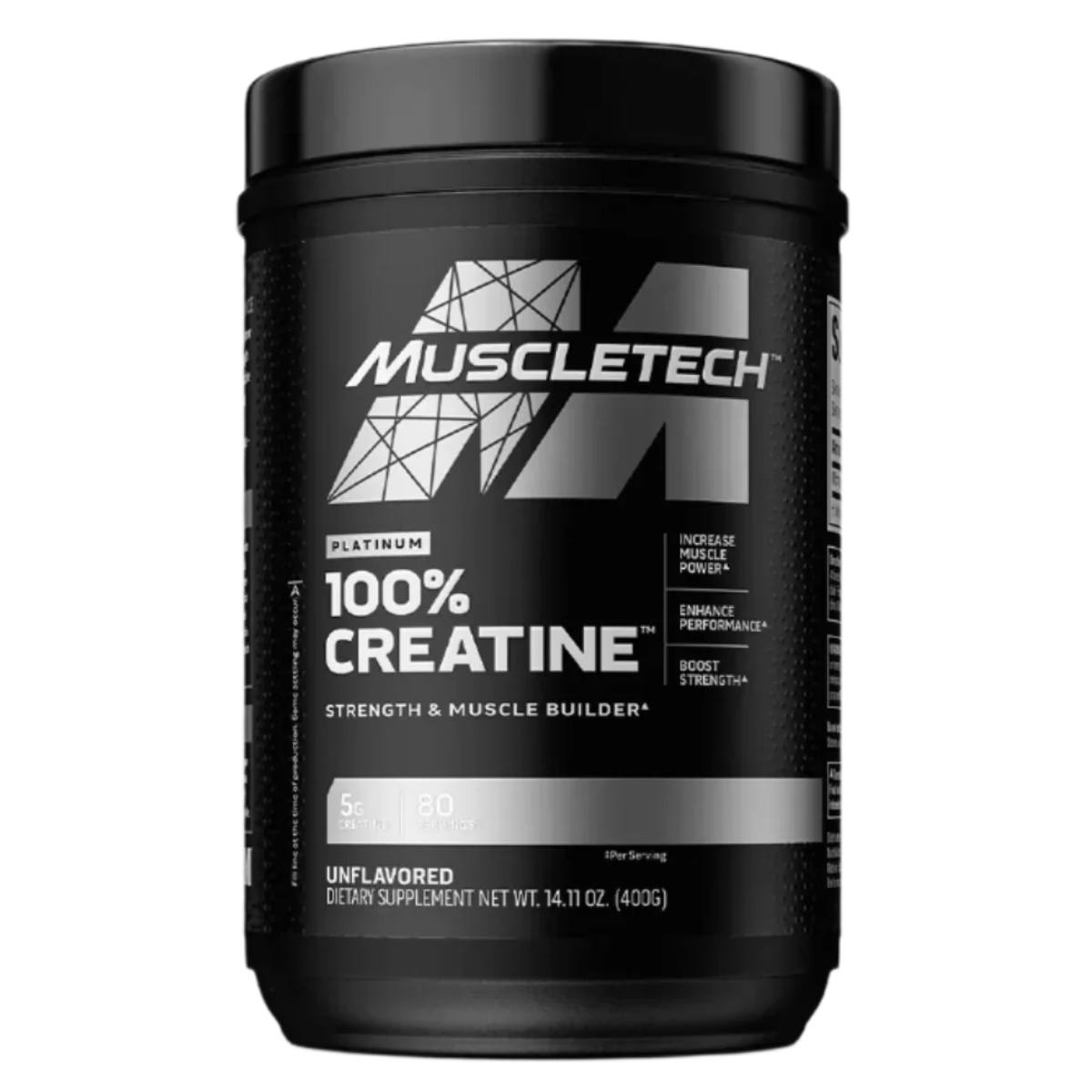 کراتین مونوهیدرات پلاتینیوم ماسل تک (MuscleTech Platinum 100% Creatine) بهبود کلی عملکرد شما را به ارمغان میآورد. کراتین کراپیور ماسل تک پلاتینیوم 400 گرمی با استفاده از کراتین مونوهیدرات خالص، جذب سریع و اثربخشی بالایی دارد و برای ورزشکارانی که به دنبال بهبود عملکرد ورزشی و رشد عضلات هستند، انتخابی ایدهآل محسوب میشود. مزیت اصلی مصرف مکملهای قبل از تمرین این است که به شما احساس انرژی بیشتری برای انجام جلسات تمرینی شدید میدهند. از سوی دیگر، مصرف مکملهای بعد از تمرین به بدن کمک میکند تا زودتر از خستگی عضلانی خلاص شود. بنابراین، مکمل کراتین MuscleTech هر دو این مزایا را با هم ترکیب میکند و عملکرد شما را به سطح بسیار بالاتری میبرد. مکمل کراتین پلاتینیوم ماسل تچ، باعث افزایش اندازه و قدرت عضلات میشود و ریکاوری را بهبود میبخشد. HPLC کراتین میکرونیزه را آزمایش کرده و ثابت شده است که این مکمل فاقد فیلر و قند اضافه شده است. هر پیمانه حاوی 5 گرم کراتین مونوهیدرات است.