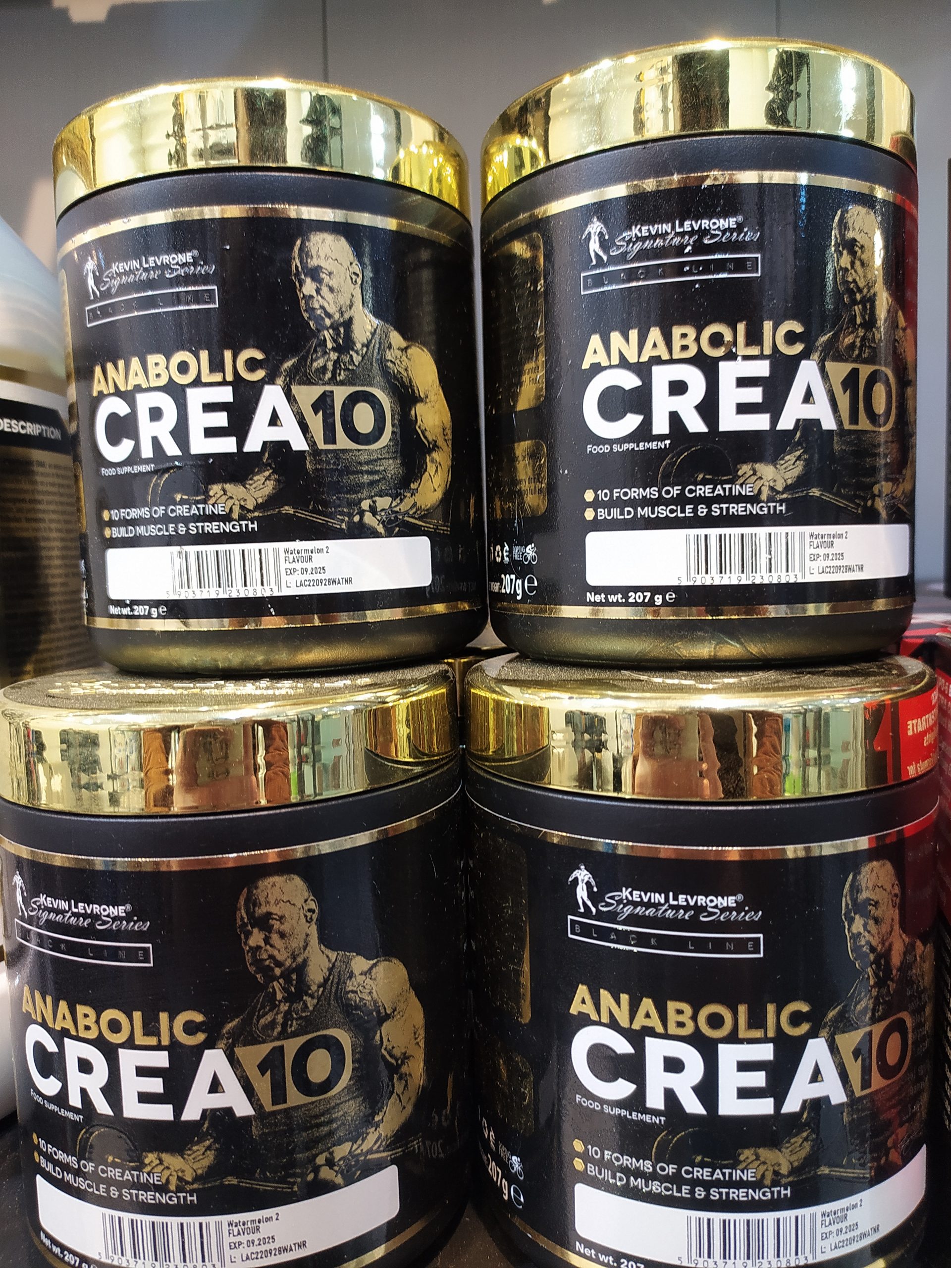 کراتین آنابولیک کرا۱۰ کوین لورون یک محصول عضله ساز و افزایش دهنده ی قدرت مبتنی بر کراتین با ده شکل مختلف است . از این رو دو قسمت نام آن ، "Crea" و "10" است . تنوع کراتین ها ، مکمل آنابولیک کراتین Kevin Levrone را منحصر به فرد و کاملا متفاوت از رقبای خود می کند .مکمل Anabolic Crea 10 کوین لورون همچنین دارای تائورین ، سیترولین مالات ، شنبلیله ، آرژنین ، اورنیتین ، بتائین و فلفل سیاه برای بهبود جذب می باشد .