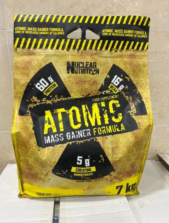 گینر مس اتمیک ناکلیر Nuclear Atomic Mass Gainer Formula یک مکمل پودری است که برای تهیه نوشیدنی پروتئینی و کربوهیدراتی مغذی غنی شده با کراتین و ال گلوتامین طراحی شده است و به بزرگسالانی که ورزش های با شدت بالا را انجام می دهند توصیه می شود. پروتئین به رشد و حفظ توده عضلانی کمک می کند. کراتین عملکرد بدنی را در فوران های متوالی تمرینات کوتاه مدت و با شدت بالا افزایش می دهد، اثر مفیدی با مصرف روزانه 3 گرم کراتین به دست می آید.برای تهیه نمونه اورجینال این محصول با ضمانت اصالت به سایت www.mokamel-star.com مراجعه فرمائید.مواد تشکیل دهنده:مالتودکسترین، کمپلکس پروتئین [کنسانتره پروتئین وی (از شیر)، دوغ، پروتئین وی ایزوله (از شیر)، کنسانتره پروتئین وی هیدرولیز شده (از شیر)، کازئین میسلار (از شیر)]، کاکائو، کراتین مونوهیدرات، ال-گلوتامین ضخیم کننده (صمغ زانتان)، کنسانتره آب چغندر، طعم دهنده ها شیرین کننده (سوکرالوز).طریقه مصرف :۲الی ۳ بار در روز بستگی به مقدار نیاز و هر بار ۲ اسکوپ از این محصول را در ۲۵۰ میلی لیتر اب یا شیر سرد به خوبی به وسیله شیکر حل کرد و میل کنید.